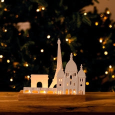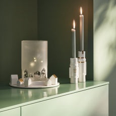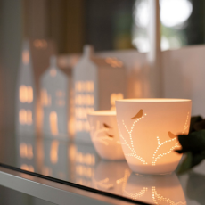 Porcelain & Acacia Village Tealight City is a delicate porcelain cutout collection of homes inserted into an acacia wood base. Placing light behind these beautiful buildings creates wonderful light and shadow effects. This city can be combined with the church or gingerbread houses in...